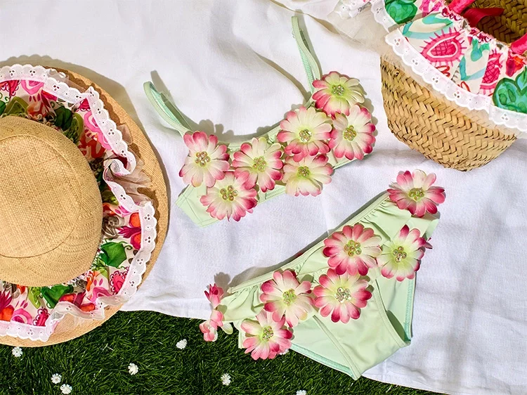New SeasonSelini ActionGirls Pastel Green Tulle Ruffle & Flower Swimsuit