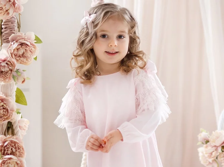 ExclusiveSofijaBaby Girls Pink Cotton Dress with Flowers
