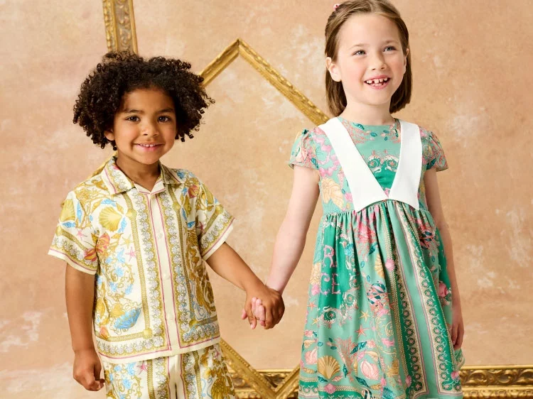 Founded by Gianni Versace in 1978, the loved Italian label is known for its bold and luxurious designs. And the childrenswear collection is no different! Versace’s iconic Medusa and Barocco motifs take the spotlight, printed across T-shirts, dresses, bags and more alongside styles made for the smallest followers of fashion.