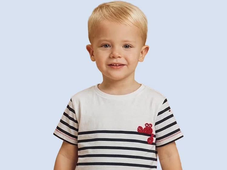 New SeasonWeek-end à la merBoys White & Beige Stripe Cotton T-Shirt with Embroidered Boats