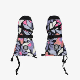 Technical ski mittens for girls by Deux par Deux, in a bold pink, purple retro flower pattern. Part of the brand's TEKNIK high-performance collection, they offer optimum protection and functionality in low temperatures, ready for the slopes and outdoor adventures. Waterproof and breathable, they feature a zip pocket to insert hand warmers, a cosy microfleece lining to keep hands dry, and an ergonomic pre-curved fit with Cordura®-reinforced tips.