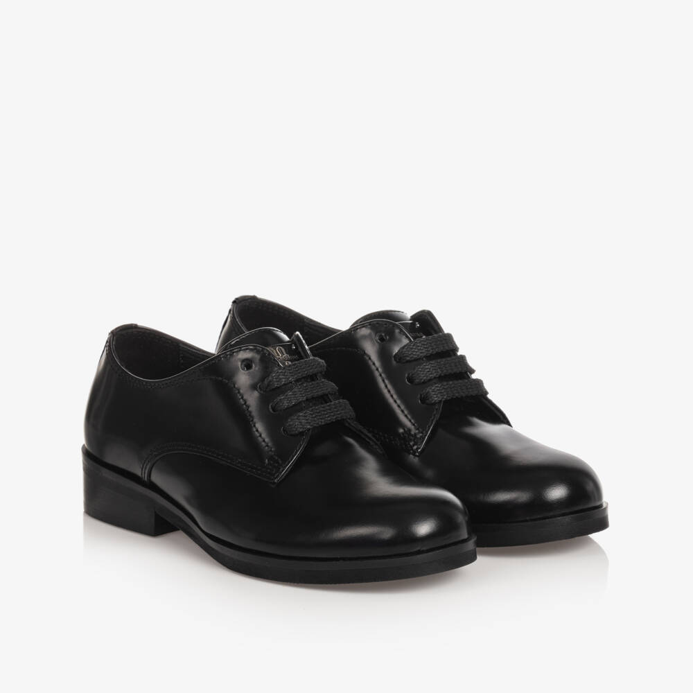 Ideal for smart occasions, these black leather shoes for boys are by Italian luxury brand Dolce & Gabbana. Fastening with laces, the uppers are simply designed, with a shiny silver logo plate on the tongue for a subtle designer touch. They have a comfortable leather lining and a rubber outer sole which helps with grip.