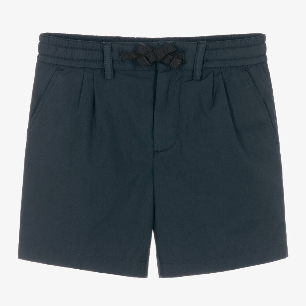 Designed by luxury Italian label Dolce & Gabbana, these navy blue Bermuda shorts are made for little boys. Made in soft, smooth cotton, they have subtle slanted pockets on the sides and a silver logo plaque on the back for instant designer appeal. Fastening with a button and zip on the front, the drawstring detail on the waist keeps these smart shorts up-to-date with a contemporary twist.