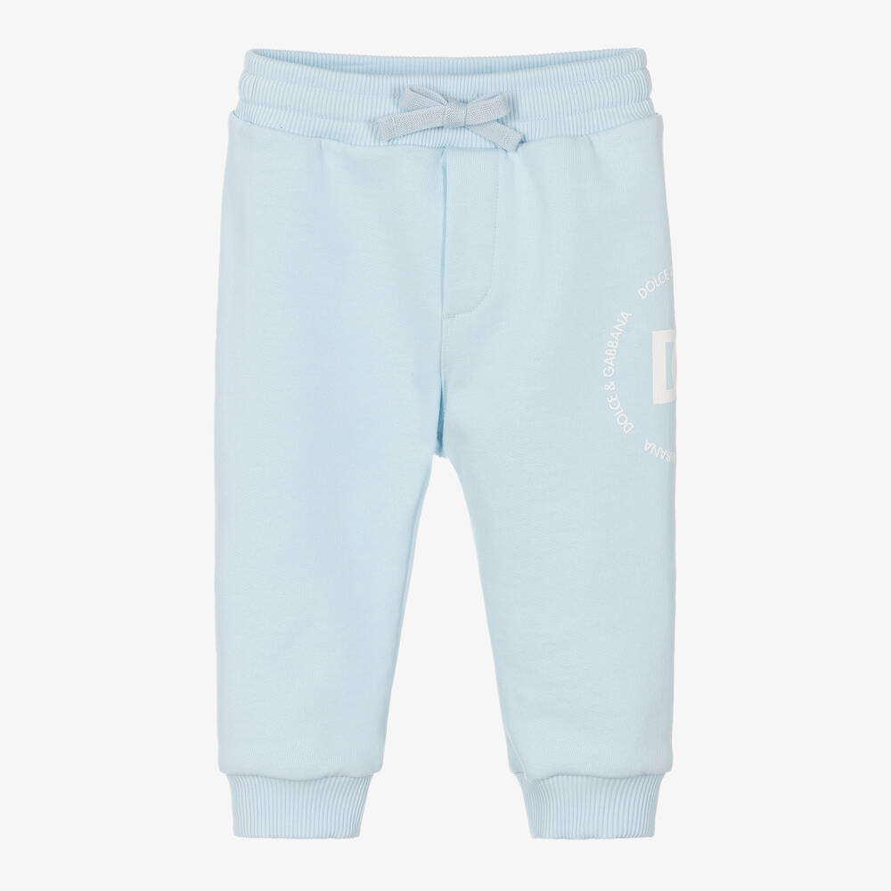 Casual and comfortable for little boys, these pale blue joggers are by luxury Italian fashion house Dolce & Gabbana. One side is printed with a circular repeat logo, with a bold crossover DG logo in the centre. Made in soft mid-weight cotton jersey, they have ribbed trims and an elasticated drawstring waist for an ideal fit.
