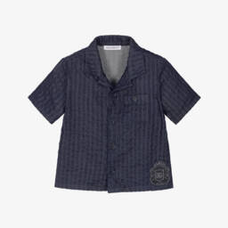 This pale blue short-sleeved shirt for boys by luxury Italian label Dolce & Gabbana features an eye-catching seashell design and beige striped trims. Made in luxurious silk twill, it offers a lightweight and smooth feel, with a revere collar and chest pocket adding a stylish, relaxed finish.