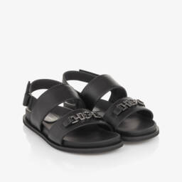 Shiny gold leather sandals for little girls by luxury designer, Dolce & Gabbana. Crafted in beautifully soft leather, they have a crossover DG logo strap on the front and a supportive velcro fastening around the back of the foot. A rubberised outer sole, embossed with branding, improves grip.