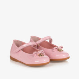 Elegant pink sliders for girls by luxury Italian brand Dolce & Gabbana. Showcasing refined Italian leather craftmanship, they feature the DG Millennials logo cutout with top stitching on the strap and sophisticated brogue detailing on the insole. The comfortable leather soles have rubber inserts for improved grip.