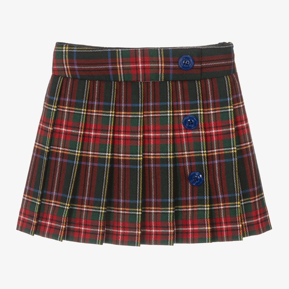 Channelling a preppy aesthetic, this red skirt for girls is designed by luxury Italian brand, Dolce & Gabbana. Softly woven in a virgin wool blend, it is made in heritage tartan with structured pleats. Off-setting the timeless design is electric blue decorative buttons, each delicately embossing with iconic branding. The silky viscose lining adds comfort, and an adjustable waistband ensures the ideal fit. It discreetly fastens with a neat, concealed zip on one side.