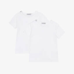 This white long-sleeved top for girls by luxury label Dolce & Gabbana, features a playful trompe l'oeil print that mimics the look of a classic pinafore dress. Accented with iconic DG logos, it is made in soft cotton jersey with a touch of stretch for added comfort. It is finished with a Peter Pan collar and neat button fastenings on the back.