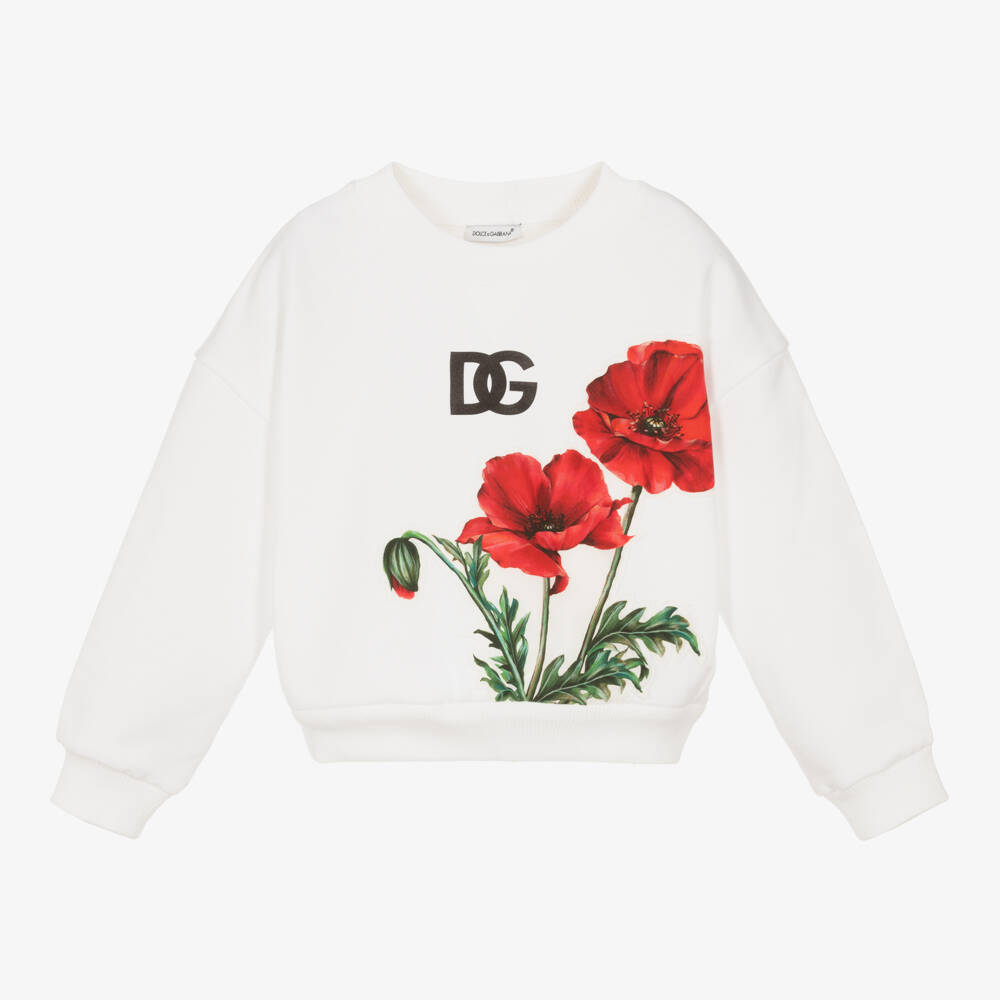 Girls White Cotton Poppy Sweatshirt