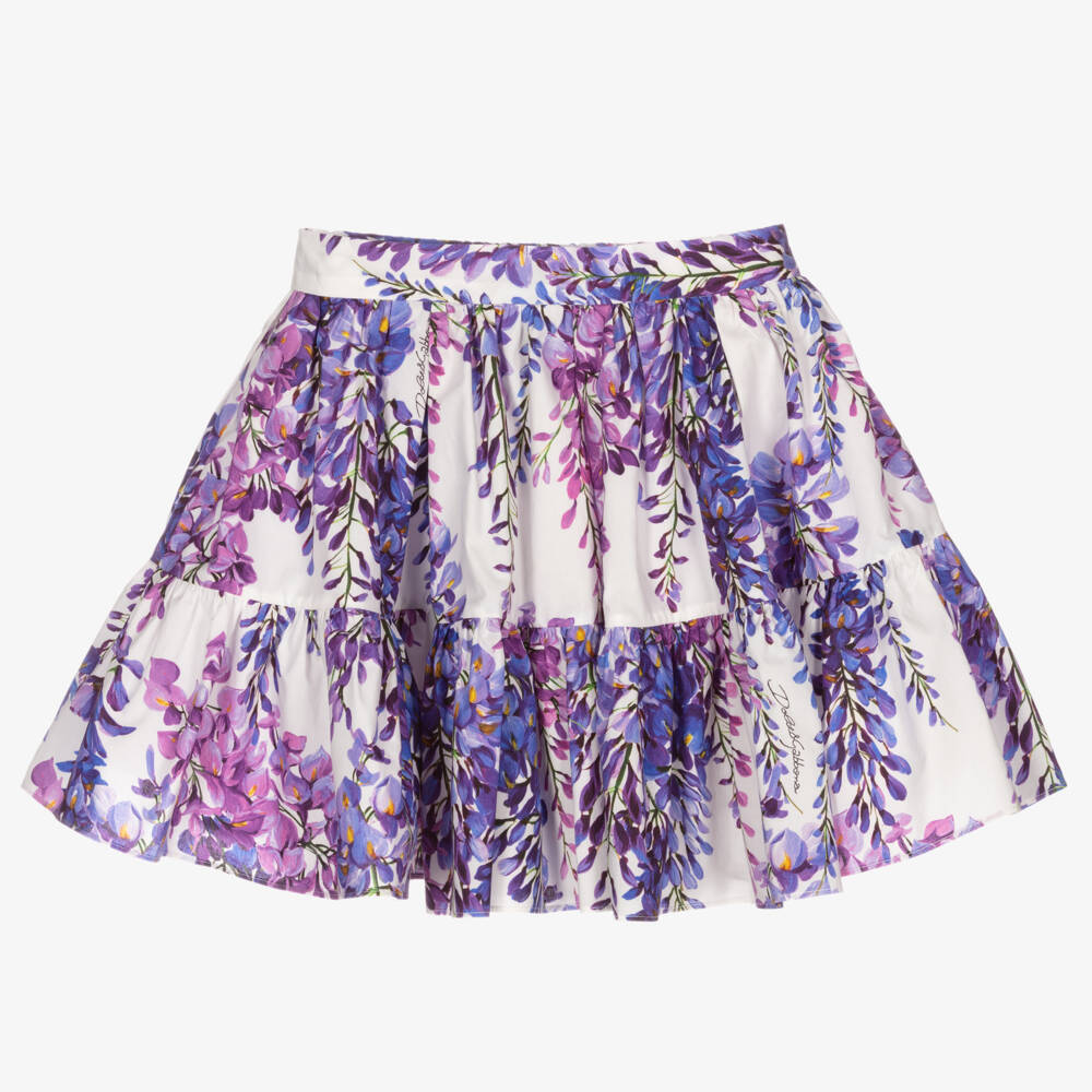 Gorgeous skirt for girls by luxury Italian designer Dolce & Gabbana, inspired by the delicate purple Wisteria print from the adult collection. Made in soft cotton poplin, it has pretty pleated details, with a tiered trim.