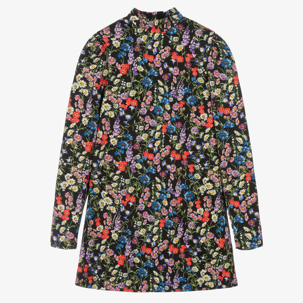 Teen Black Floral Print High Neck Dress