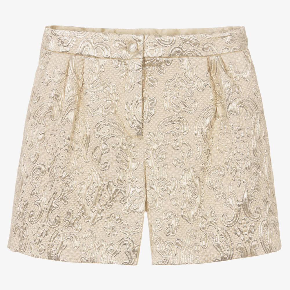 Teen Girls Gold Brocade Shorts