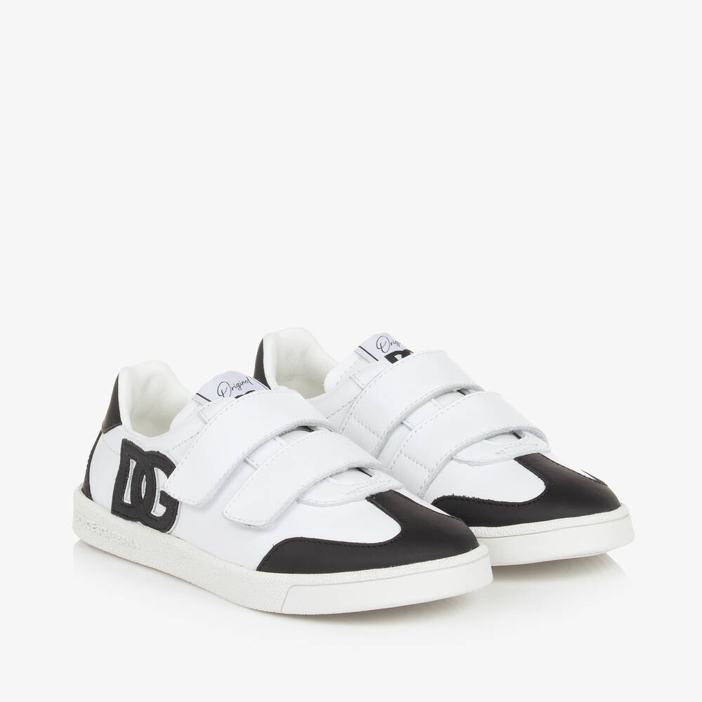White & Black Leather DG Velcro Trainers