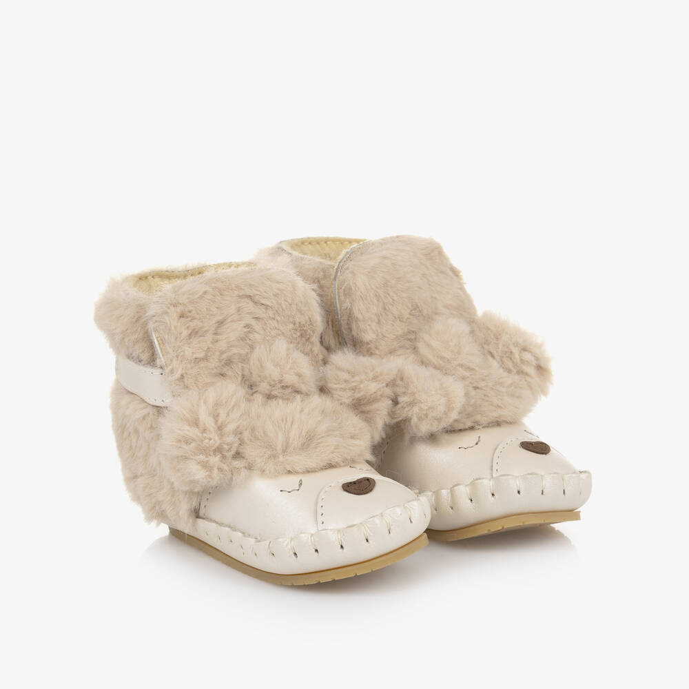 Beige Leather & Faux Fur Poodle Pre-Walkers