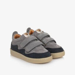 Pale beige trainers for boys and girls from Donsje, featuring a quirky, 3D whale fin appliqué. Handmade in premium leather, these comfortable shoes have a soft leather lining and lightly cushioned insole. They fasten with two velcro straps and have a non-slip rubber outer sole for good grip.