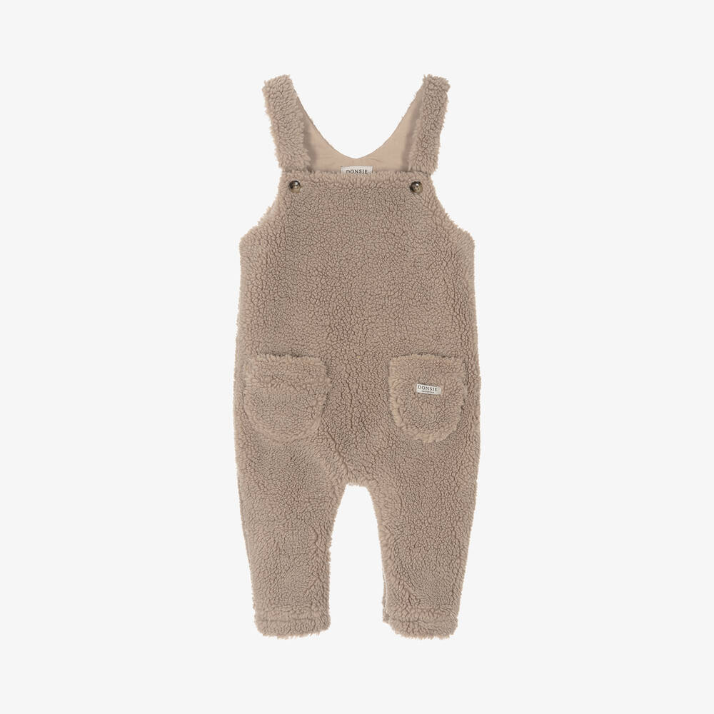 Beige Teddy Fleece Baby Dungarees