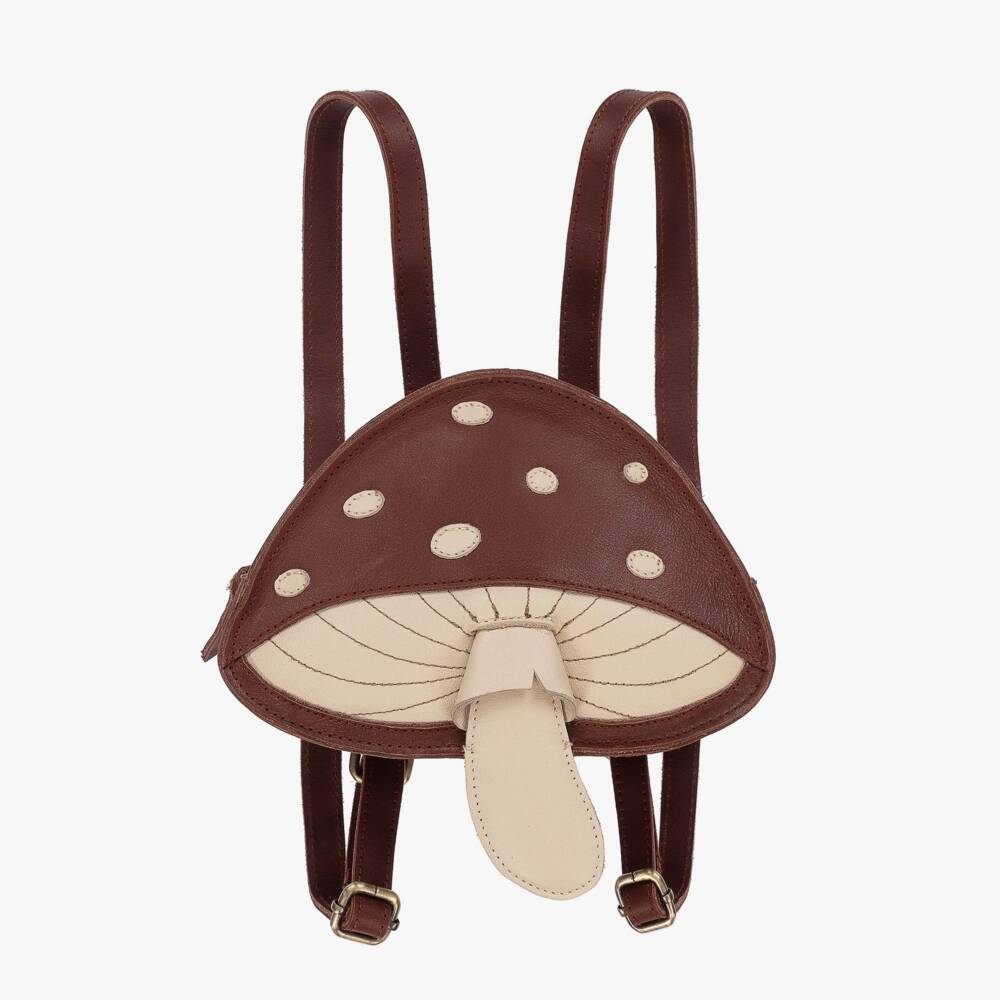 Gorgeous brown leather backpack for boys and girls from Dutch brand, Donsje. Designed to look like a toadstool, it is beautifully handmade with a canvas lining and a secure zip fastening. Ideal for carrying small essentials, it has adjustable leather shoulder straps for a comfortable fit.