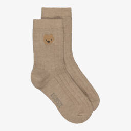 Sweet ivory socks for little boys and girls by Donsje, made in a soft organic cotton blend. They are ribbed for gentle stretch and comfort, with an adorable embroidered bunny motif on the side adding a cute touch.