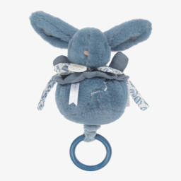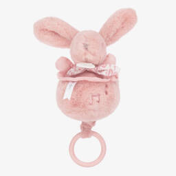 Beige bunny musical pull toy by Doudou et Compagnie, a delightful addition to any nursery. Crafted from soft plush fabric, this charming rabbit is great for cuddling and encouraging fine motor skills. When the ring is pulled, the soothing melody of 'Twinkle Twinkle Little Star' plays, making it ideal for lulling little ones to sleep. Just right for hanging in the nursery or attaching to the stroller, this charming toy comes beautifully presented in a gift box.