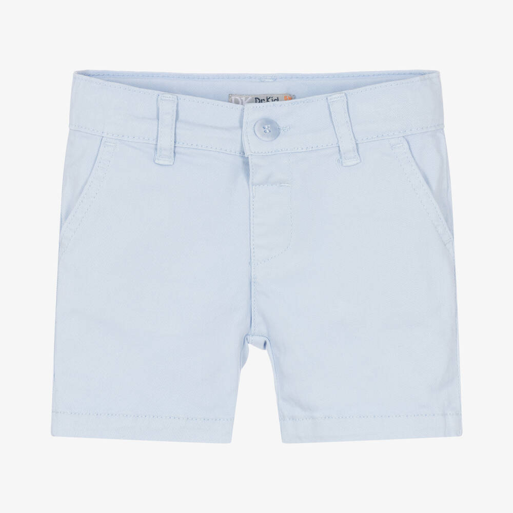 Light blue shorts for little boys by Dr. Kid, made in soft cotton twill with a gentle stretch. Casual and easy to wear, they fasten with a single button and feature pockets on the front and back. Led by comfort, these versatile shorts have an adjustable waist with additional belt loops for a great fit.