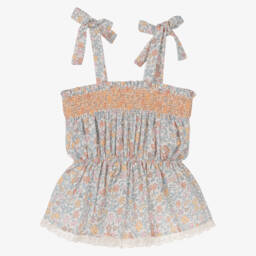These lovely ivory trousers for older girls by Dr. Kid feature a charming floral pattern in shades of orange, blue and pink. Made from lightweight cotton, they have a stylish wide-leg cut and useful pockets. For a smart finish, a removable sash belt ties into a pretty bow on the front.