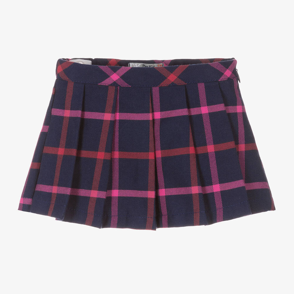 A charming navy blue skort for little girls by Dr. Kid, patterned in a lovely red and pink check. Made from a smooth cotton-blended twill, it has a pleated panel on the front and fastens with a concealed zip on one side. The adjustable waistband ensures a comfortable fit.