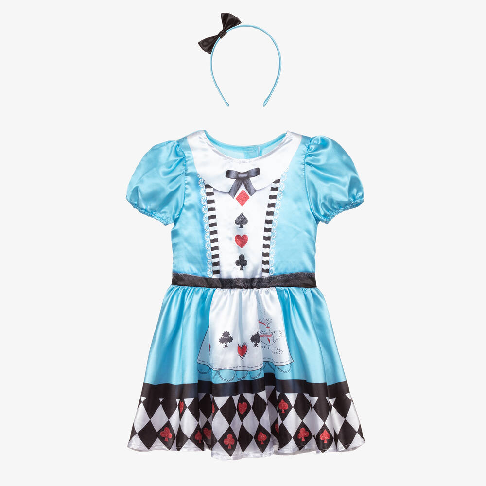 Capture the magic of Alice in Wonderland with this charming blue costume for girls, by Dress Up by Design. Inspired by the magical story book, it is made in lightweight blue and white satin and is patterned with red and black playing card motifs. The costume comes with a matching blue satin bow hairband to capture your little ones sense of imagination.