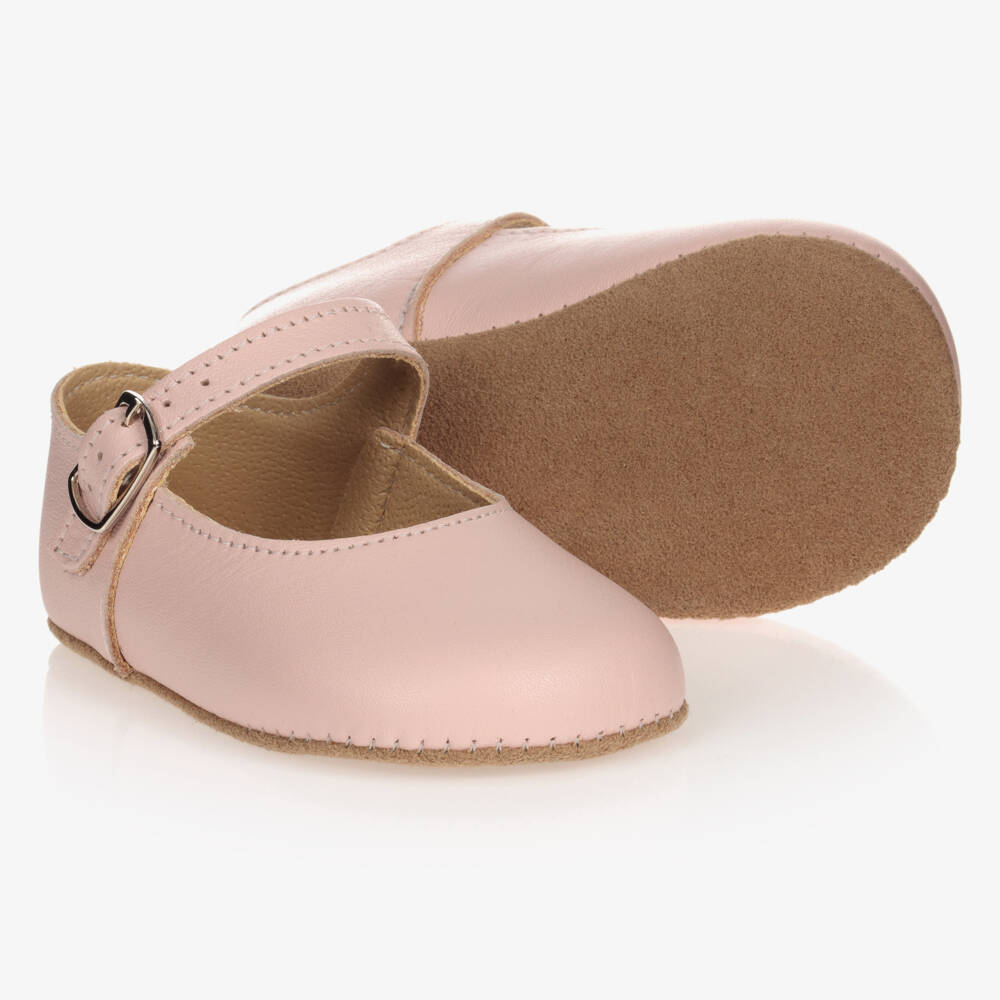 Utterly delightful, these pink pre-walker shoes for baby girls are by British brand Early Days. Made from smooth Italian leather, they are in a traditional 'Mary Jane' style with silver buckle fastenings on the sides. Lined in soft faux leather, the faux suede outsole is hard wearing and flexible for comfortable wear.