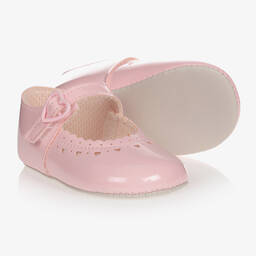 Absolutely charming, these white pre-walker shoes for baby girls are by British brand Early Days. Made from smooth patent faux leather, they have sweet heart perforations and scalloped edging on the front for a lovely finish. In a classic 'Mary-Jane' style, the practical velcro strap fastenings have adorable heart-shaped faux buckle details. Lined in soft textile, they have flexible faux leather outsoles for comfortable wear.