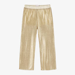 Pretty sparkly gold trousers for girls by EIRENE, made in soft and stretchy plissé fabric. This straight leg style is partially lined in soft jersey and has a comfortable elasticated waist.