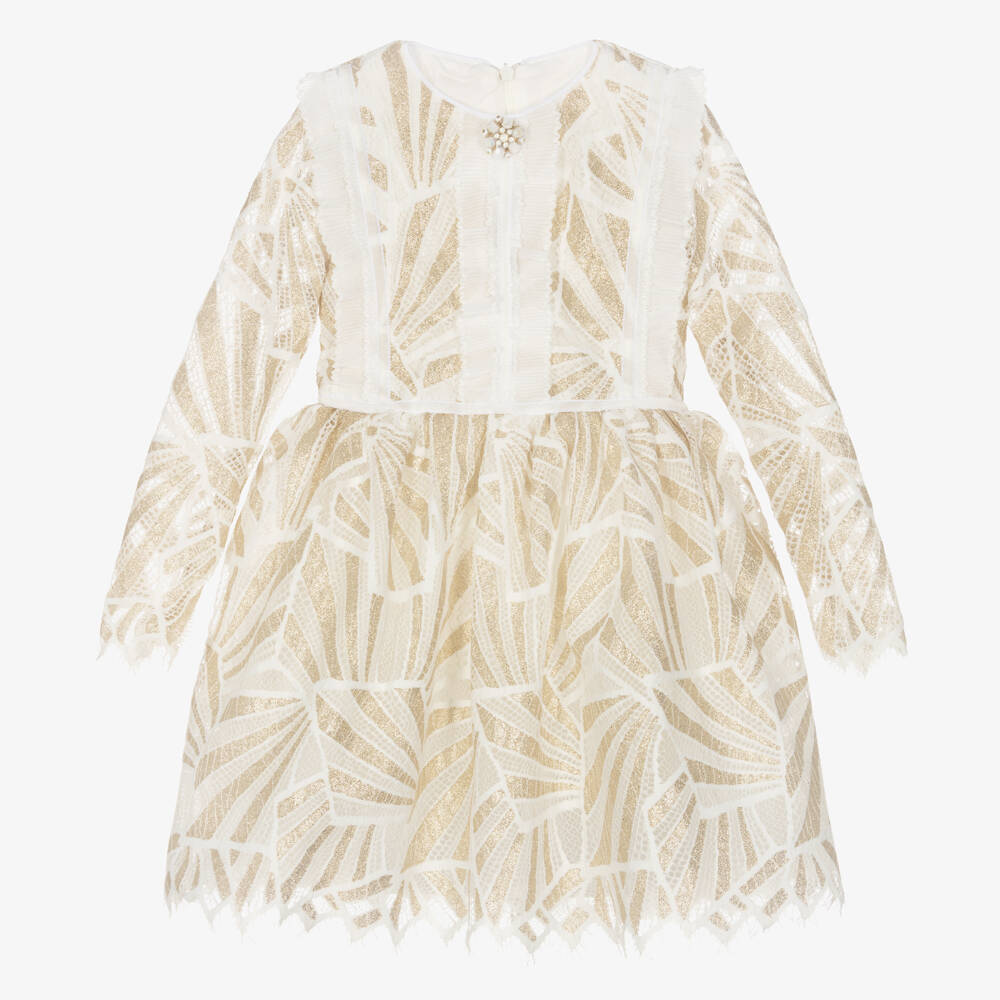 Girls Ivory & Gold Lace Dress