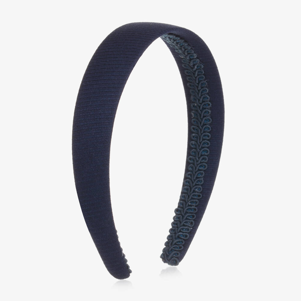 Simply styled, this navy blue hairband for girls is by EIRENE. The flexible band is covered with smooth twill fabric and has a tonal trim on the underside for added comfort. Ideal for back-to-school, it comes in a branded organza storage bag.
