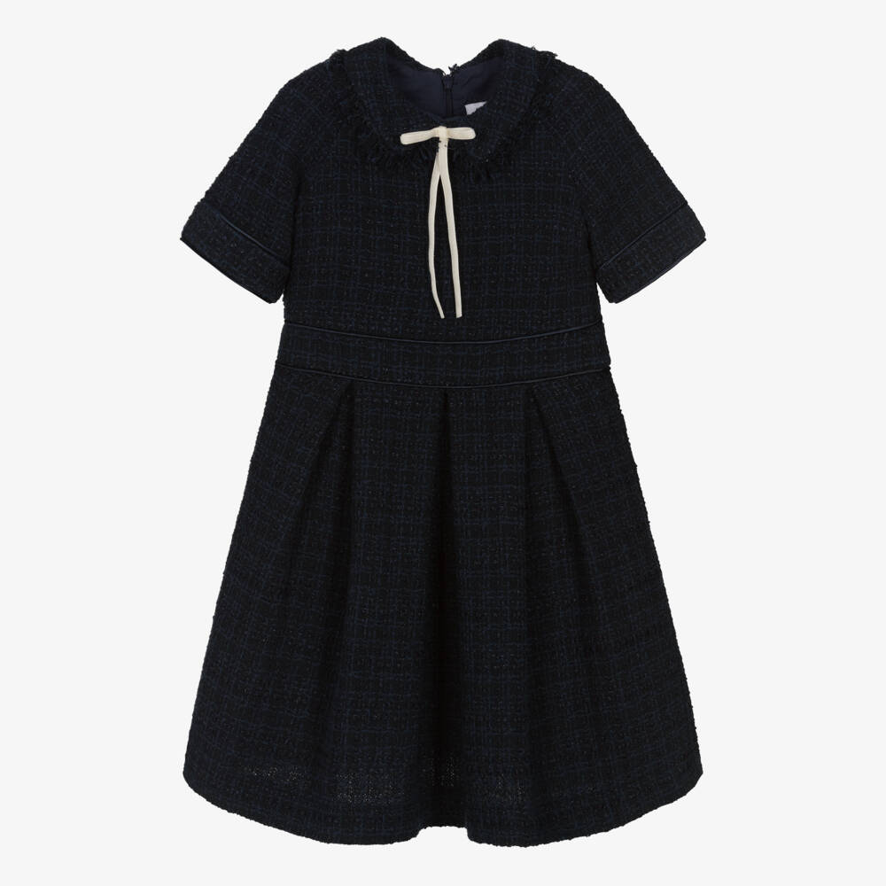 Girls Navy Blue Tweed Dress
