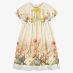Simply elegant, this pink chiffon dress for girls by EIRENE features a beautiful floral design. It is soft and lightweight and has a cool cotton lining for comfort. This special occasion dress has a small Peter Pan collar delicately embellished with shimmering sequins and crystals for an added touch of sparkle.