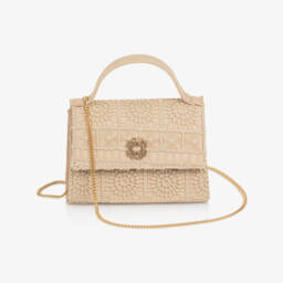 This beautiful ivory handbag for girls by Elie Saab, adds a touch of elegance to any special occasion outfit. Covered in delicate tulle, it is embellished with shimmering gold sequins and features the luxury label's signature gold-tone logo on the flap. This glamorous bag has a simple magnetic popper fastening and includes a carry handle. A detachable gold chain strap allows the bag to be carried on the shoulder or across the body.