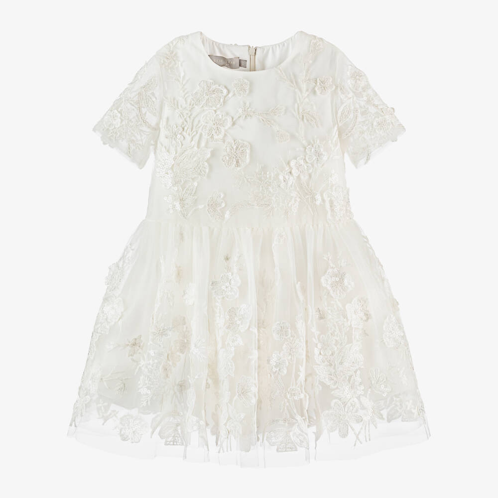 Girls Ivory Embroidered Tulle Dress
