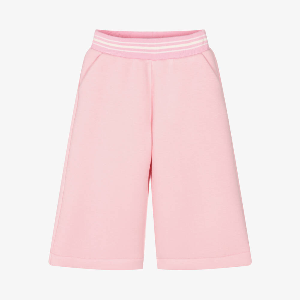A pair of sleek pink trousers for girls from renowned brand Elie Saab. In luxurious neoprene, these Italian-crafted trousers offer a wonderful drape for a sophisticated look. Softly ribbed and striped in pink and white, the waistband is gentle on little tummies for comfortable wear. They have three useful pockets, with the label's signature logo print detailed on the back.