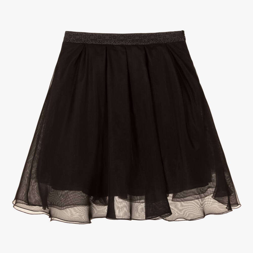 Teen Girls Black Silk Organza Skirt