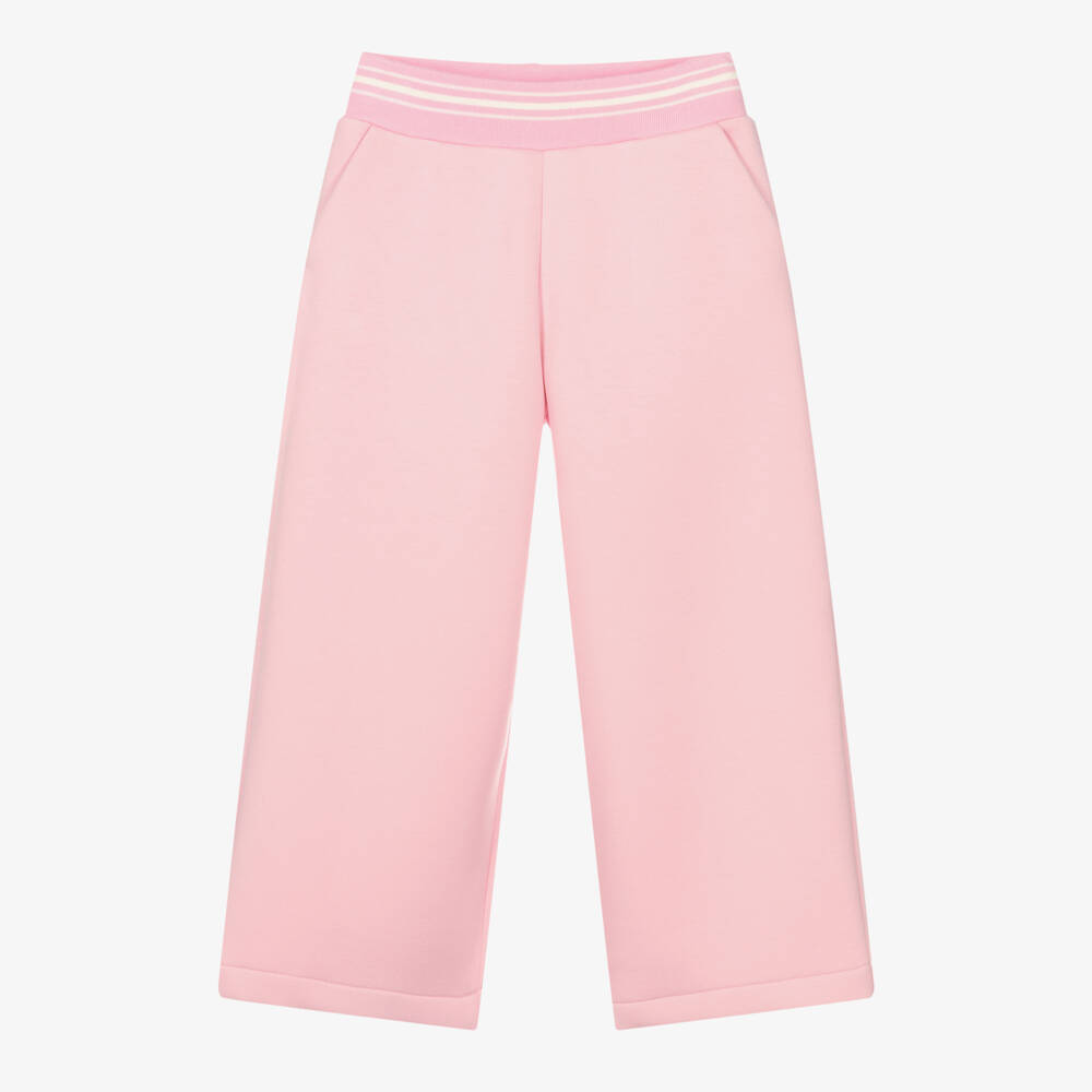 Stylish pink culottes for teen girls from luxury designer Elie Saab. In mid-weight Milano jersey, these chic trousers have a flattering wide leg fit with a striped waistband in black and white. With the label's signature logo print detailed on the back, they have practical front pockets and an extra pocket on the back for storing small essentials.