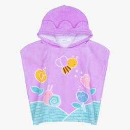 Lovely ivory poncho towel by Elodie featuring a charming blue toile pattern, ideal for keeping little boys and girls warm and dry. It is made from soft, absorbent towelling with a cosy hood and popper fastenings.