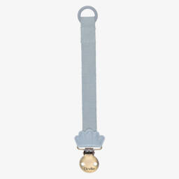 Ensure baby's dummy never gets lost or dirty with this ivory dummy clip for boys and girls by Swedish brand Elodie. The cotton ribbon strap has a lovely glittery silver sparkle and a faux leather trim. The wood-covered buckle clip is made from nickel-free stainless steel, and the ring from durable food grade silicone.
