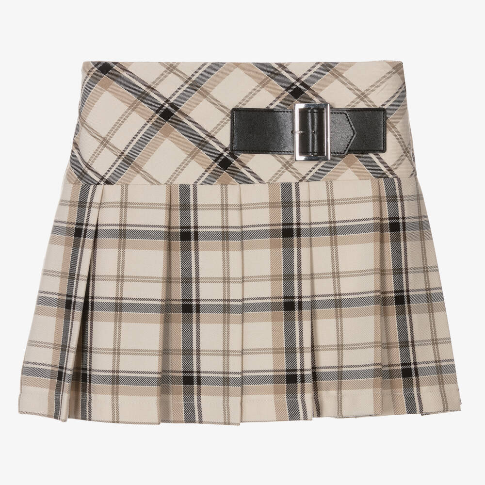 Girls Beige Check Pleated Skort