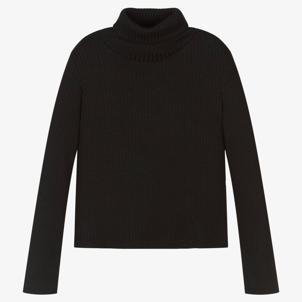 Black ribbed rollneck sweater for girls by Elsy, knitted in a soft viscose blend. Effortlessly stylish, it is warm and cosy, ideal for all day comfort.