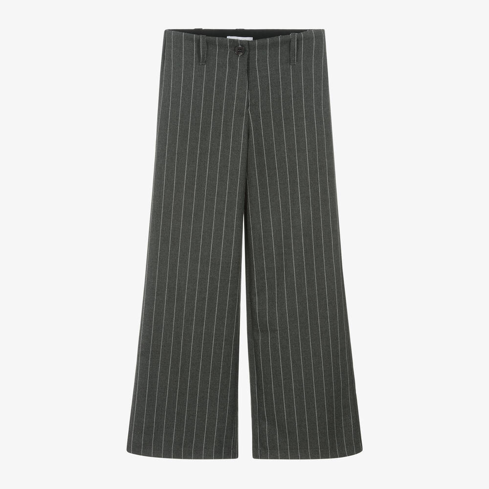Smart and stylish, these grey wide leg trousers for girls are by Elsy. Made from soft brushed twill, they have a sophisticated white pinstriped pattern, belt loops, and a partially elasticated waist for a comfortable fit. They fasten with a concealed zip and tonal button on the front for a neat finish.