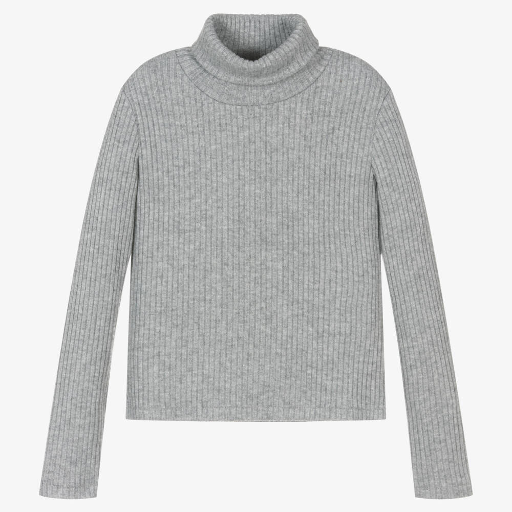Grey ribbed rollneck sweater for girls by Elsy, knitted in a soft viscose blend. Effortlessly stylish, it is warm and cosy, ideal for all day comfort.