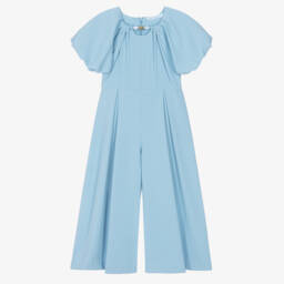 Chic ivory jumpsuit for girls by Elsy, with a sleeveless silhouette and wide leg shape. The pleated bodice has a stylish gold chain accent, complemented by the gold chain and pearl belt which decorates the waist with glamour. A concealed zip on the back fastens the piece.