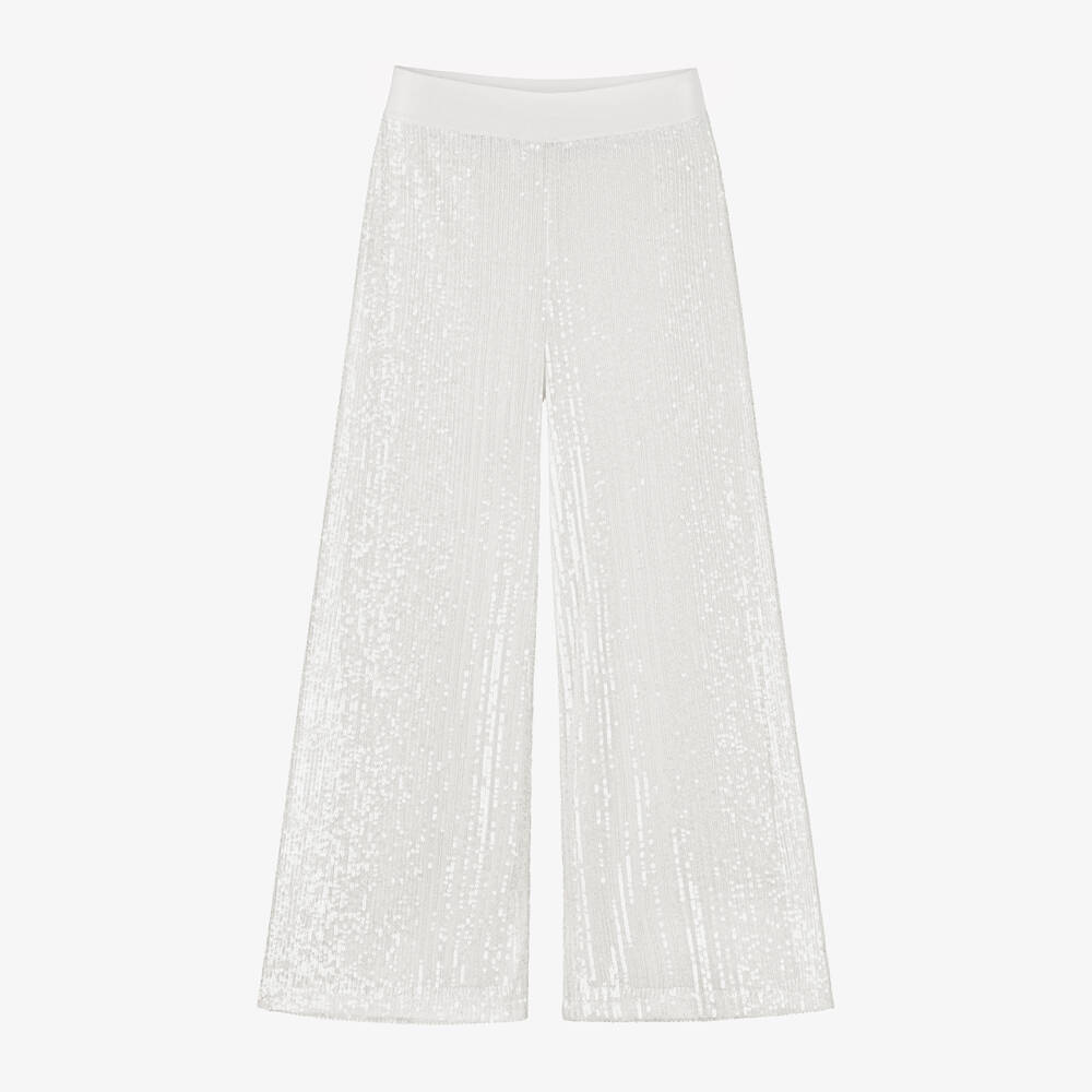 Girls Ivory Sequinned Mesh Trousers