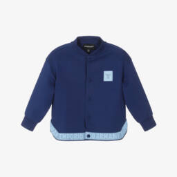 Shiny grey puffer jacket for boys by Italian brand Emporio Armani, made in smooth recycled fabric. Warm and cosy, it is padded with soft recycled down and has ribbed cuffs for extra warmth. The removable hood attaches with poppers and there are fleece lined popper-fastening pockets on the front. For subtle designer styling, there is a tonal grey, shiny logo and Eagle on the back and a smaller Eagle logo by one pocket. This comfortable, snug jacket fastens with a logo branded zip on the front.