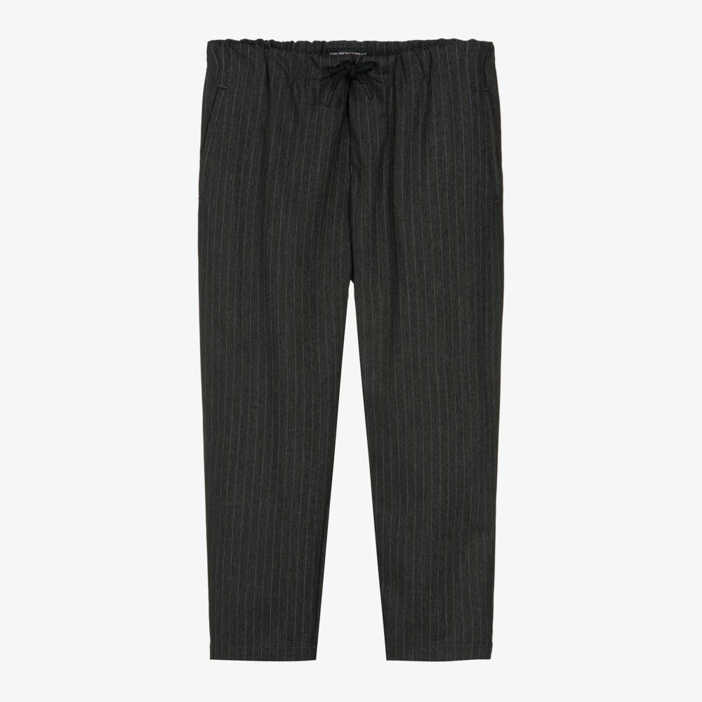 Boys Grey Pinstripe Drawstring Trousers